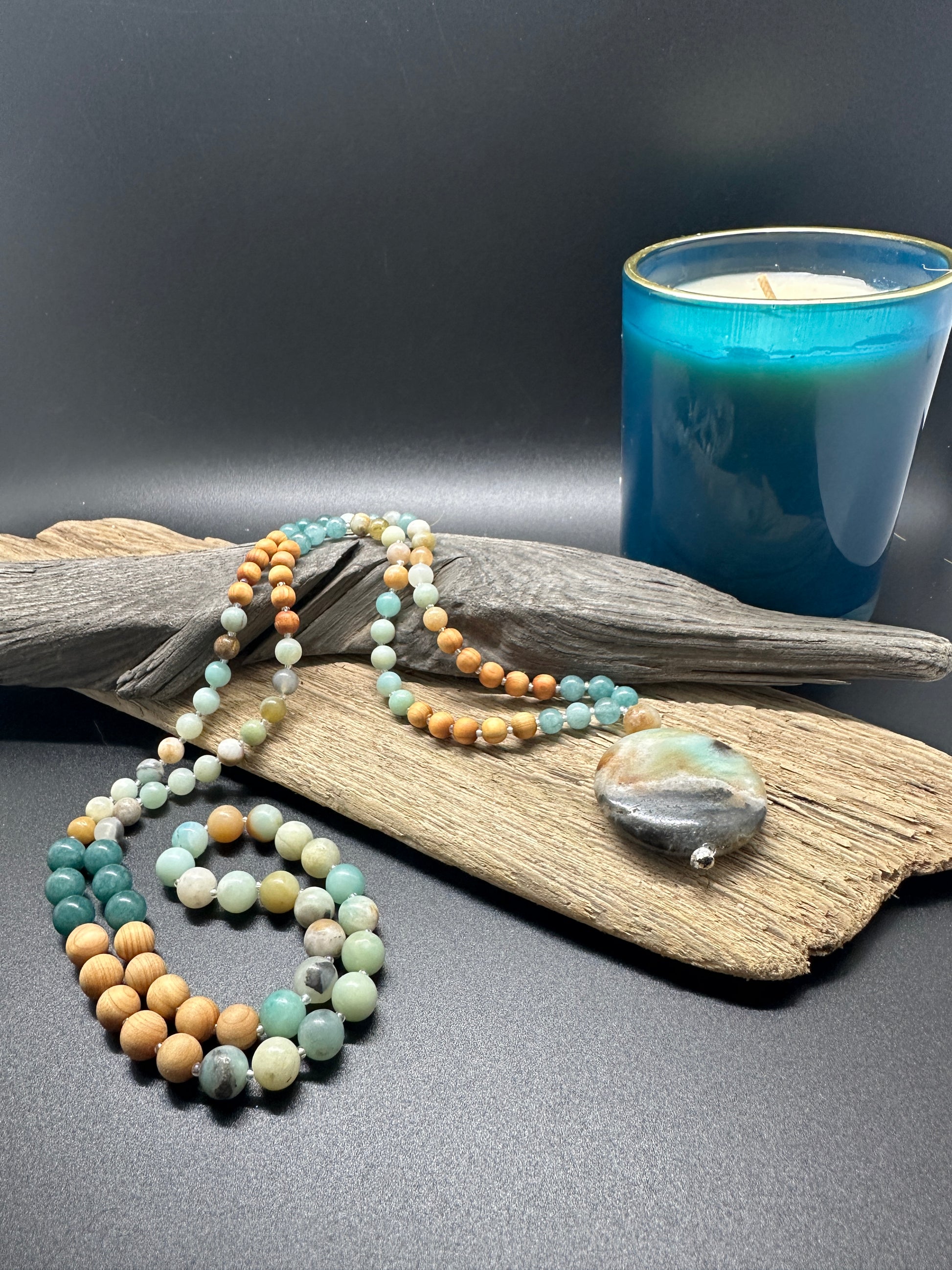 This mala was born in a moment that felt like breath — effortless, present, and deeply human.It carries the intention of peace and stability, crafted to remind the wearer that her greatest medicine is already within her.